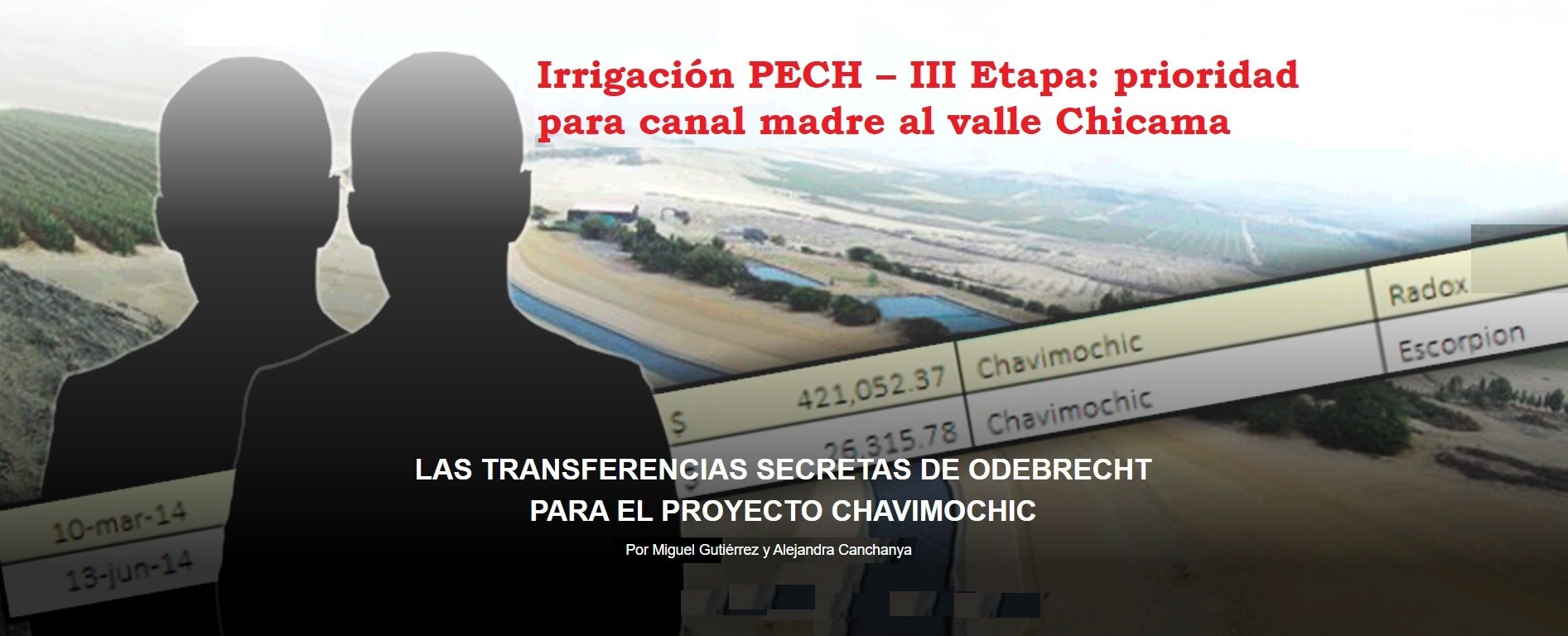 Las transferencias efectuadas en marzo y junio de 2014 coinciden con el periodo en el que el consorcio Río Santa- Chavimochic, conformado por Odebrecht y la peruana Graña y Montero, ganara la buena pro para la ejecución de la tercera etapa del proyecto que contemplaba ampliar el sistema de irrigación y construir la presa Palo Redondo que reverdecería más de 100 mil hectáreas de la región de La Libertad, con una inversión compartida entre el Estado y la empresa que ascendía a los 715 millones de dólares.