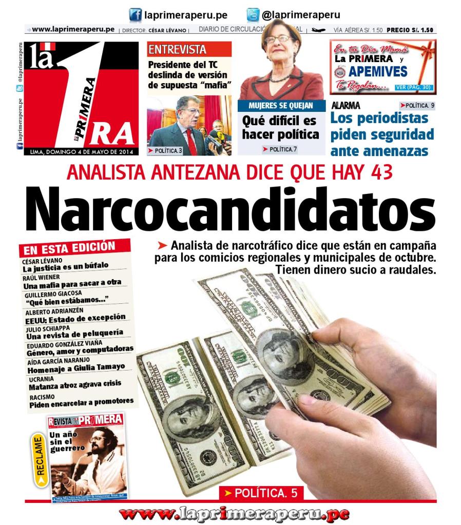 En el Congreso de Perú también hay varios tipos de lobbies criminales. Un diputado encubrió a un cártel de constructores, otros promovieron a jueces corruptos y vendieron absoluciones como indulgencias. Actualmente hay 68 diputados investigados, la mayoría del partido Alianza para el Progreso del ex gobernante César Acuña, que se enriqueció de la noche a la mañana con un consorcio de colegios privados en todo el país. Pero los imitadores peruanos del legendario narcotraficante colombiano Pablo Escobar no se conforman con puestos en el Congreso como él, dice el experto en drogas Jaime Antezana. Según él, desde 2016 los narcocandidatos se han presentado incluso a la presidencia.