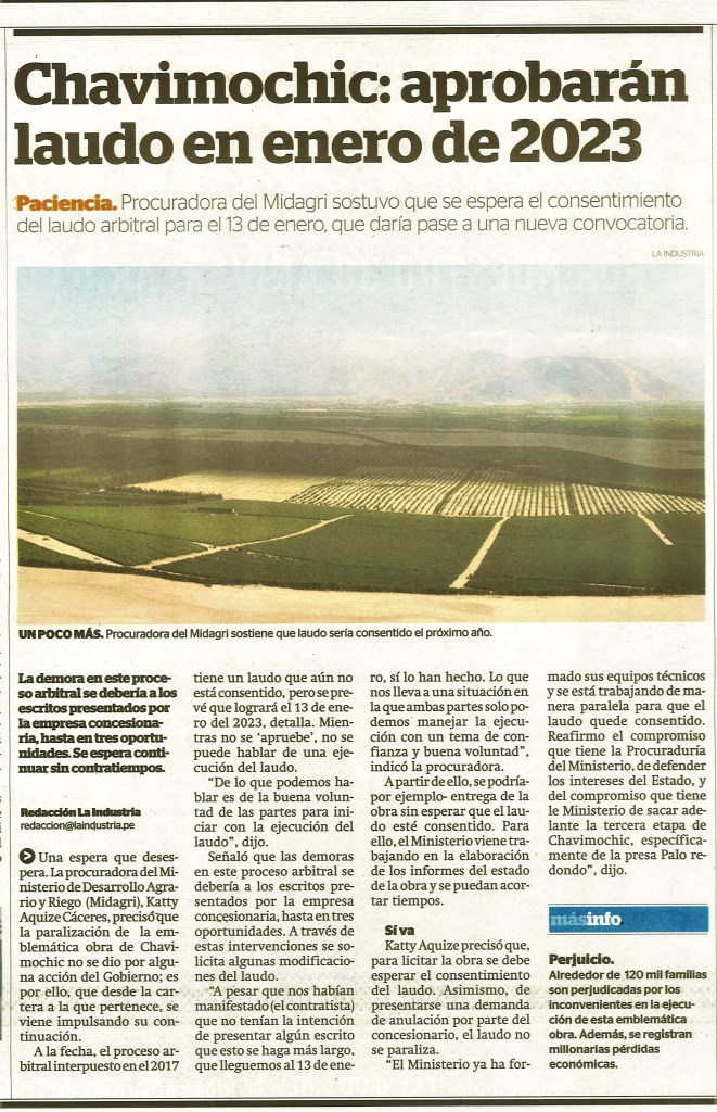 2 comentarios en “Procuradora de Agricultura vuelve a colocar los puntos sobre la íes en Chavimochic III
