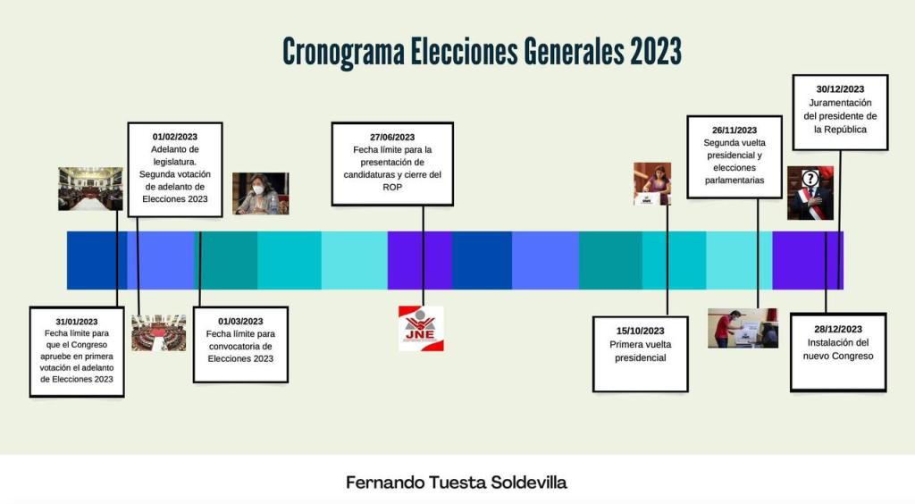 «No hay escenario prefecto, pero abril elecciones e inicio de nuevo gobierno para julio del 2024, es ya demasiado tarde. Un cronograma como el propuesto, para este año, ayudará a descomprimir este violento escenario en el que vivimos. El costo de no aprobar lo más pronto posible un adelanto de elecciones, puede ser aún más alto». Expreso el politogo. Sin duda, una propuesta que debe analizarse por el bien de la patria.