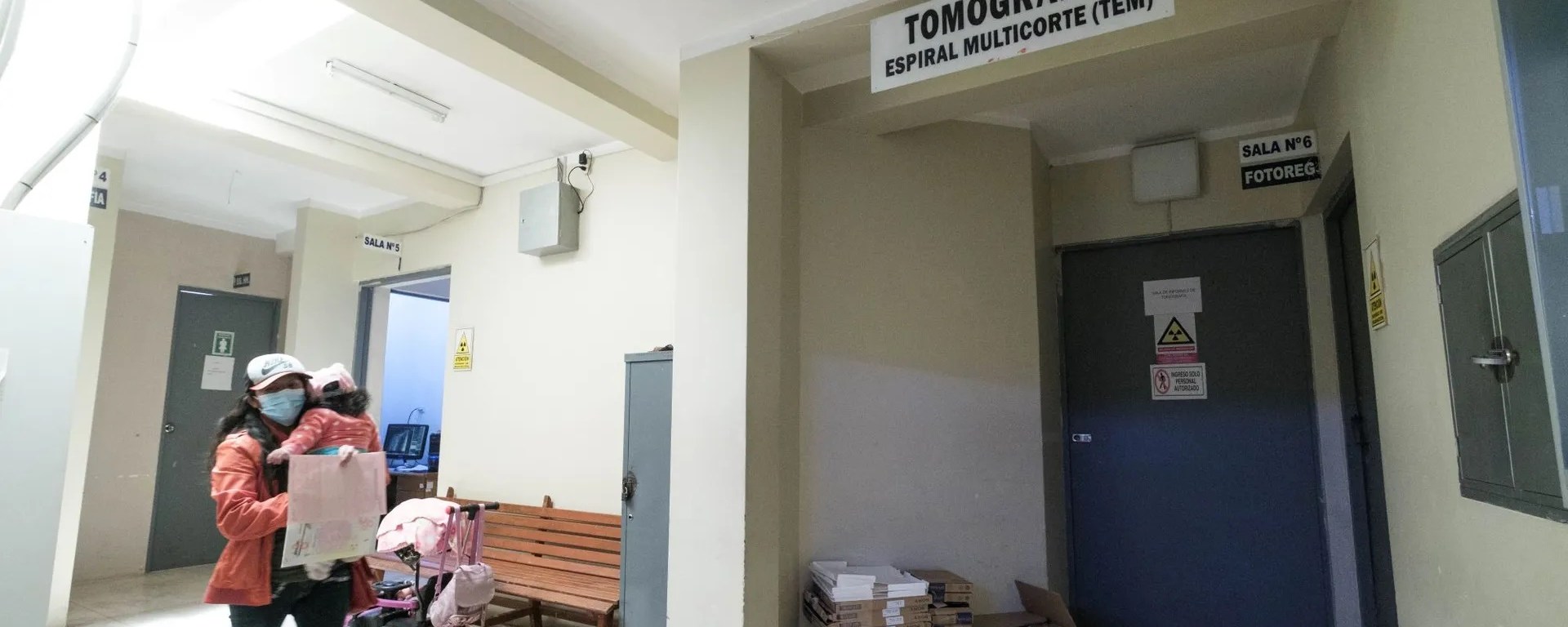 Al igual que Victoria, cada día diez pacientes -ocho del Seguro Integral de Salud (SIS) por su situación de pobreza o pobreza extrema- requieren de una tomografía en el Hospital Carlos Monge Medrano. Un tomógrafo permite captar imágenes de rayos x de cualquier parte interna del cuerpo, como el cerebro, abdomen, tórax o la columna vertebral, para detectar fracturas, hemorragias, tumores, coágulos de sangre y otros males en cuestión de minutos. Sin embargo, en la puerta de la sala de tomografía un letrero colocado a mediados de enero advierte que el equipo “se encuentra en mantenimiento”.