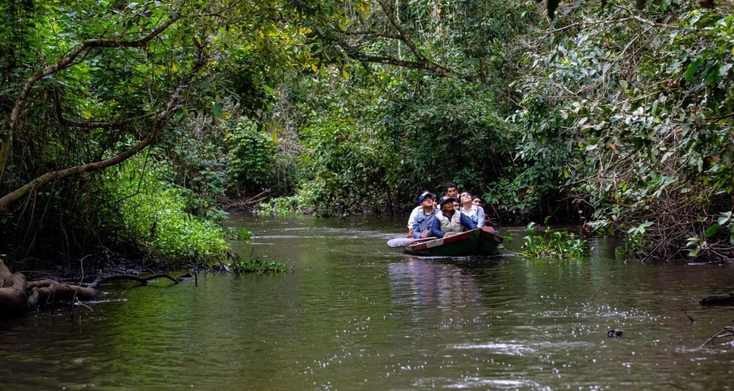 Paseo en canoa para atravesar la reserva ecológica de Santa Elena, en San Martín. (Foto: Karina Mendoza / PROMPERÚ)