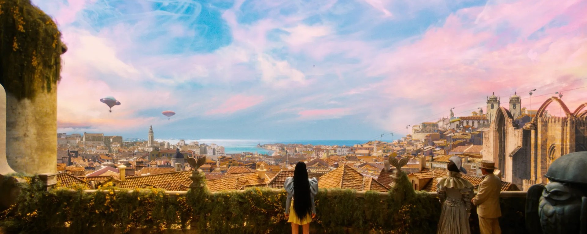 El universo visual de Pobres criaturas comenzó con una pizarra en blanco, al igual que ese nuevo cerebro vorazmente curioso de la protagonista, Bella, y es fruto de la colaboración entre la directora artística Shona Heath (colaboradora durante muchos años del fotógrafo de moda Tim Walker) y el diseñador de producción James Price (Paddington 2, El clan de hierro…). Antes incluso de leer el guion, Heath y Price sabían que Lanthimos quería que el mundo de la película se construyera desde cero al completo. La perspectiva era tan emocionante como desalentadora: «Te quedas en plan, Qué guay, y luego dices, Mierda, hay muchas cosas que hacer», explica Price, riendo. «¿Quieres construirlo absolutamente todo?».